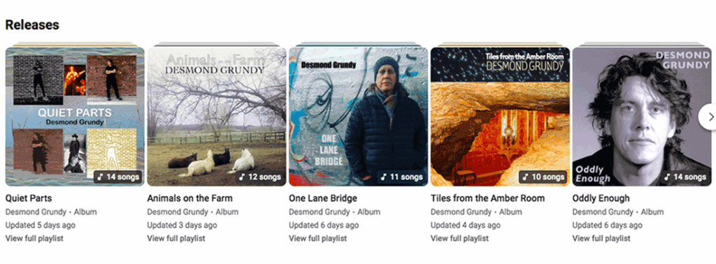 Music from 5 albums and 2 EPs can be purchased at all the usual digital outlets. CDs are also available with an email.
